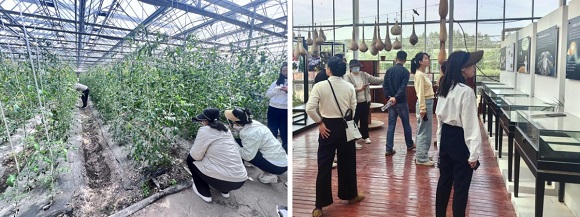 在基地相关老师的带领下,党员们前往种植大棚参观了基地的现代农业科技成果展示,有机、绿色、无公害的番茄、黄瓜、辣椒、紫茄等品种。浦江基地是农业与生物学院重要的农业新技术、新品种、新模式的试验平台,也是新时代学生劳动教育的重要载体场所。现场的党员同志们深受启发,充分肯定绿色低碳农业的发展潜力和价值。