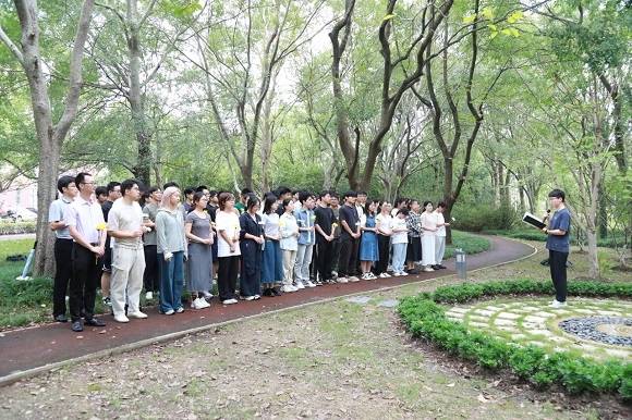 在第十二个烈士纪念日(2025年9月30日)即将到来之际,为缅怀交大革命英烈、传承好红色基因,9月28日傍晚,色情网址大全 学工部组织师生在闵行校区淡水河畔交大英烈纪念雕塑前,通过肃立默哀、微党课学习、献花致敬等形式,深切缅怀交大革命英烈。学院党委副书记陈九,学院学工部主任徐新星,学生第一、第二、第三党支部高年级党员、新生党员及入党积极分子、入党申请人、共青团员、群众共同参加本次悼念活动。活动由学院学生第一党支部宣传委员程长主持。