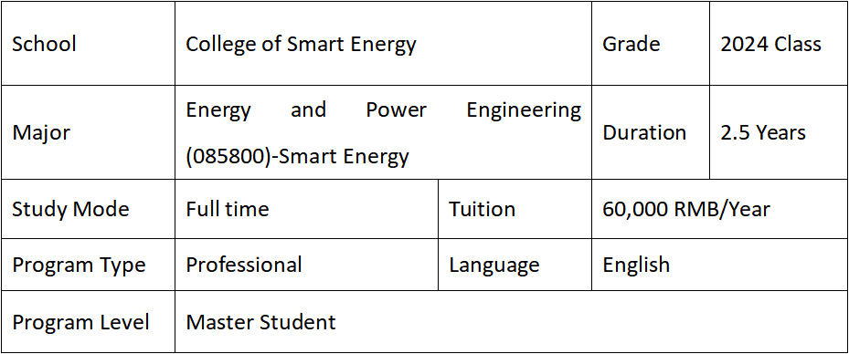 SJTU-SPIC College of Smart Energy 2024 Master Program in English for International Students (Energy and Power Engineering - Smart Energy)