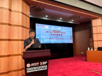 在雄壮的国歌声中结业典礼正式开始,来自船舶海洋与建筑工程学院的吕恒达作为学员代表分享了自己在培训期间的感悟与收获。