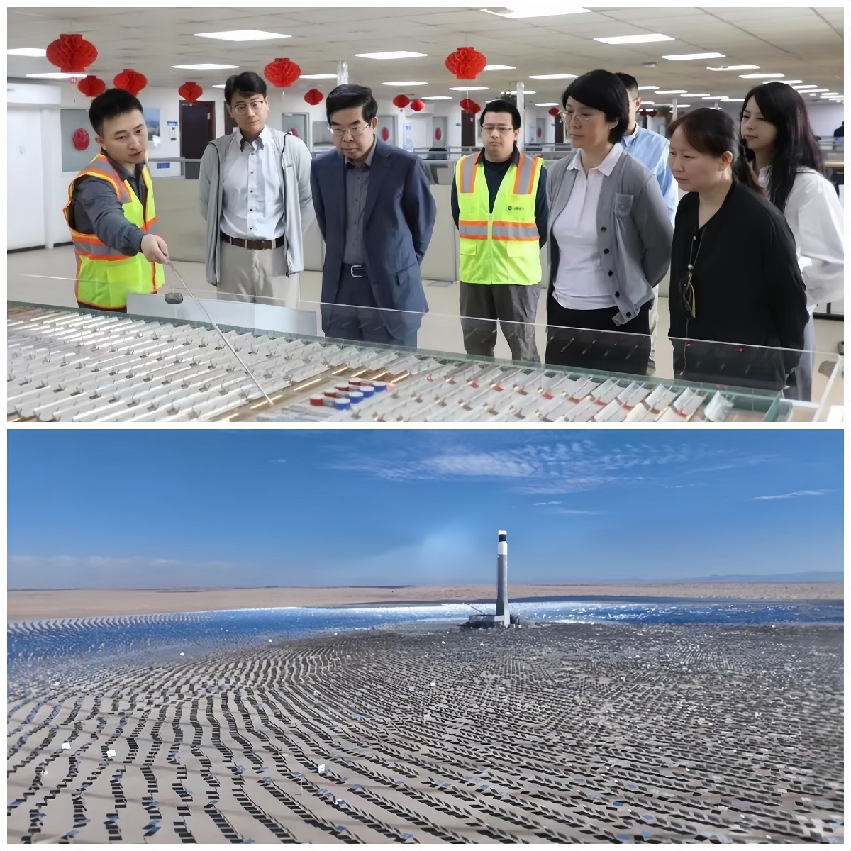 次日,黄震院士带队参访上海电气集团承建的迪拜700MW光热和250MW光伏发电项目。该项目让当地32万户家庭用上清洁电力,每年可减少160万吨二氧化碳排放。是目前世界上投资规模最大、装机容量最大、熔盐罐储热量最大的光热光伏发电综合能源项目。