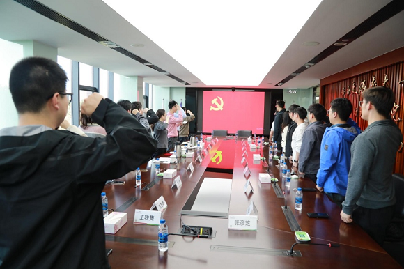 在陈九的带领下,全体与会同志面向党旗重温入党誓词,牢记庄严承诺,践行使命担当。