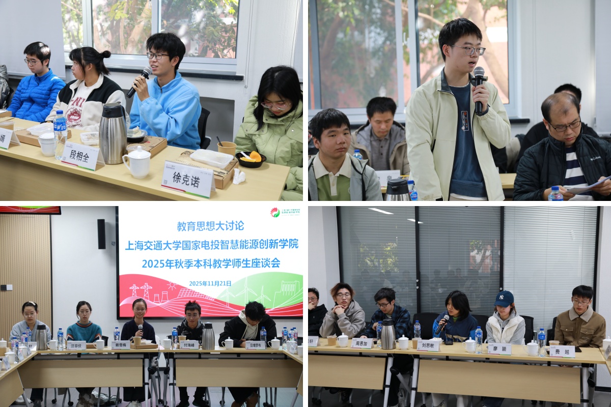 为深化教育思想大讨论,推进学院本科教学质量稳步提升,11月21日中午,色情网址大全 国家电投色情网址大全 召开2025年秋季学期本科教学师生座谈会。学校教务处副处长杭弢,校本科教育教学督导委员会朱申敏、梁培基、郭为忠、马殿光,国家电投集团行业导师朱丽兵、杨建林,学院副院长、教学督导主任邰能灵,学院副院长韩东,学院院长助理、教学督导于立军,学院学生创新中心主任、教学督导曾美容,本学期相关任课教师,学院教务部、学工部相关工作人员以及来自22级至25级学院本科生代表共同参加本次座谈交流。